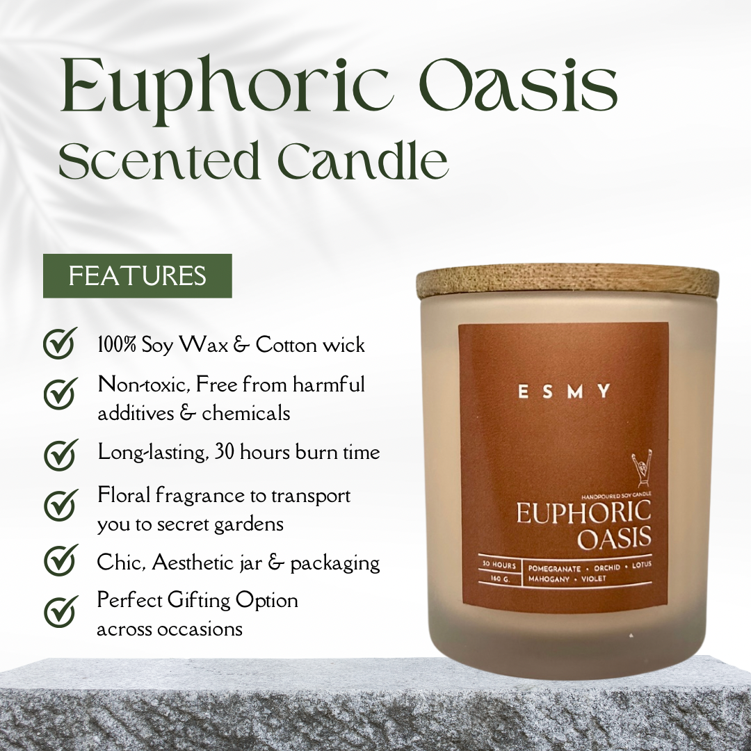 Unwind and let the soothing floral notes of our Euphoric Oasis Scented Candle transport you to a tranquil garden in full bloom.