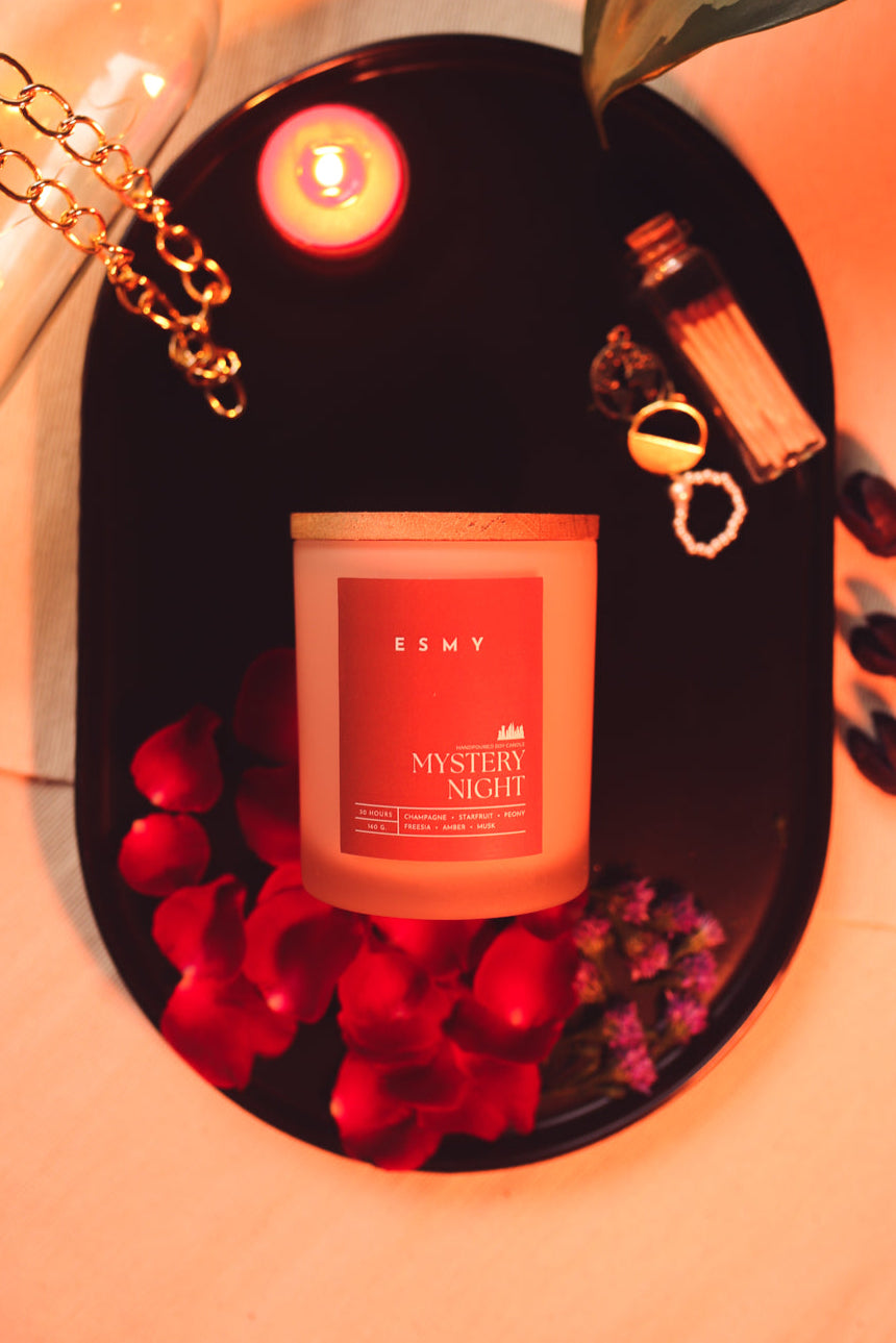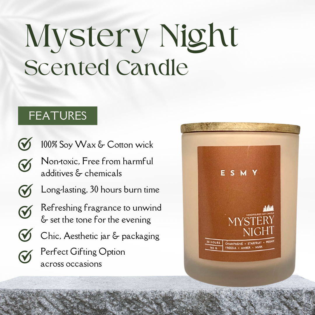 A harmonious blend designed to cast an atmospheric spell. The luxuriously fresh & velvety aromas add an element of sophistication to your space, creating an intimate setting perfect for contemplation and relaxation. Whether it's a cozy night in, a celebration, or simply a moment of self-care, the Mystery Night Candle is your ideal companion