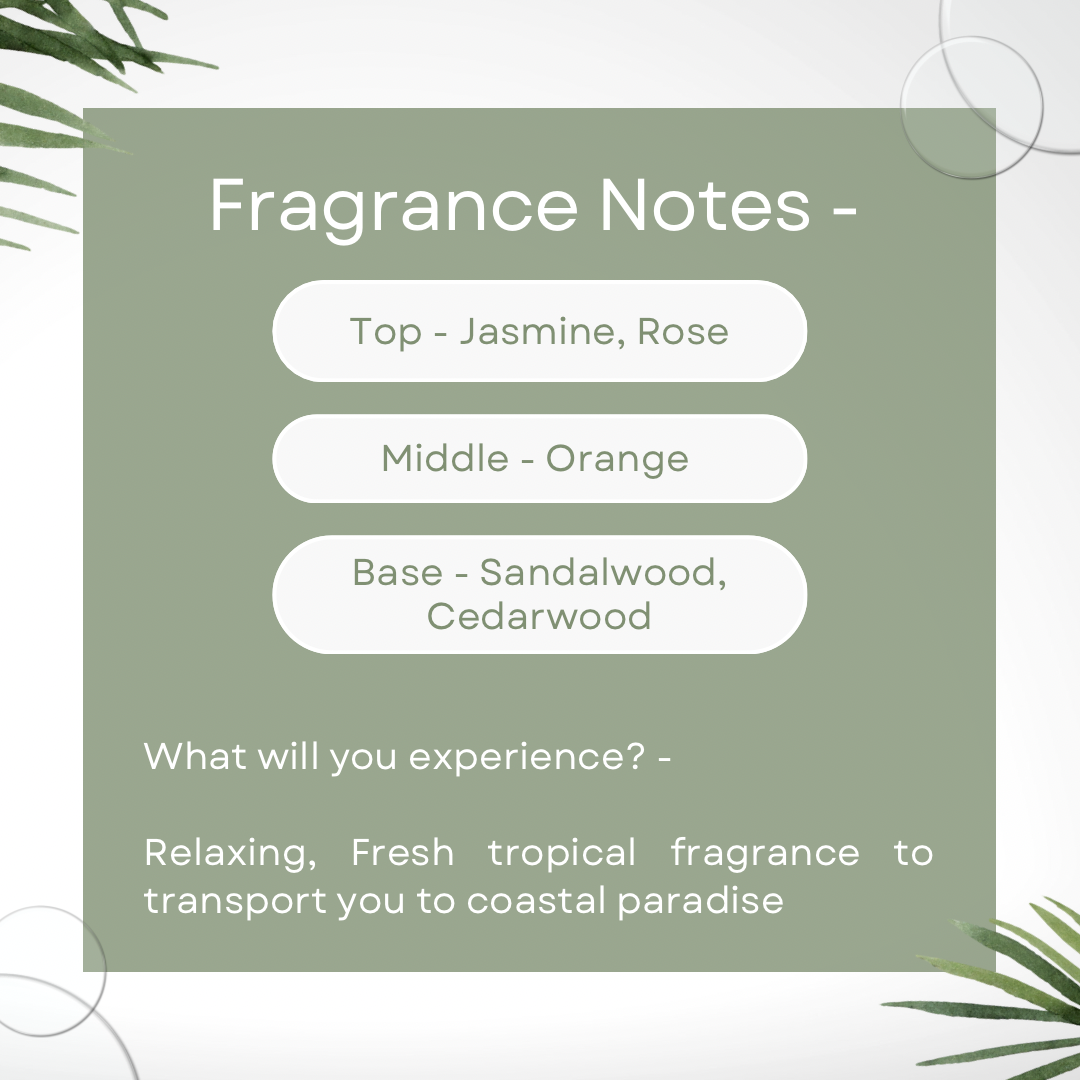 Immerse yourself in the soothing embrace of a gentle sea breeze, as the invigorating scent transports you to magical shorelines, awaken your senses, and create a haven of relaxation & escape from the comfort of your home. Close your eyes and let the aroma of salty air, mingling with hints of tropical fruits and delicate florals, fill your space with marine freshness.