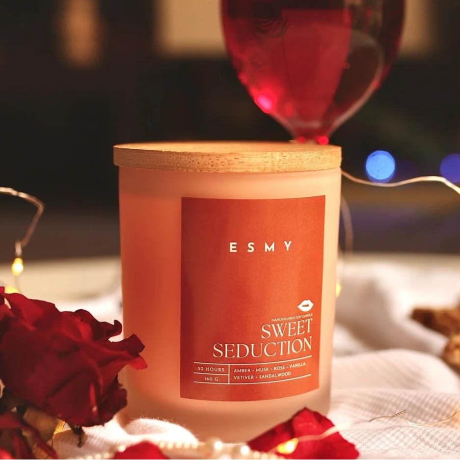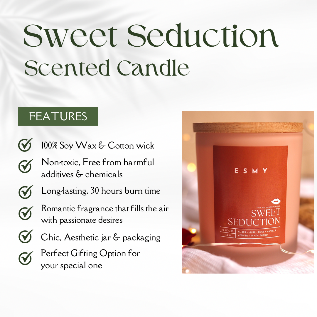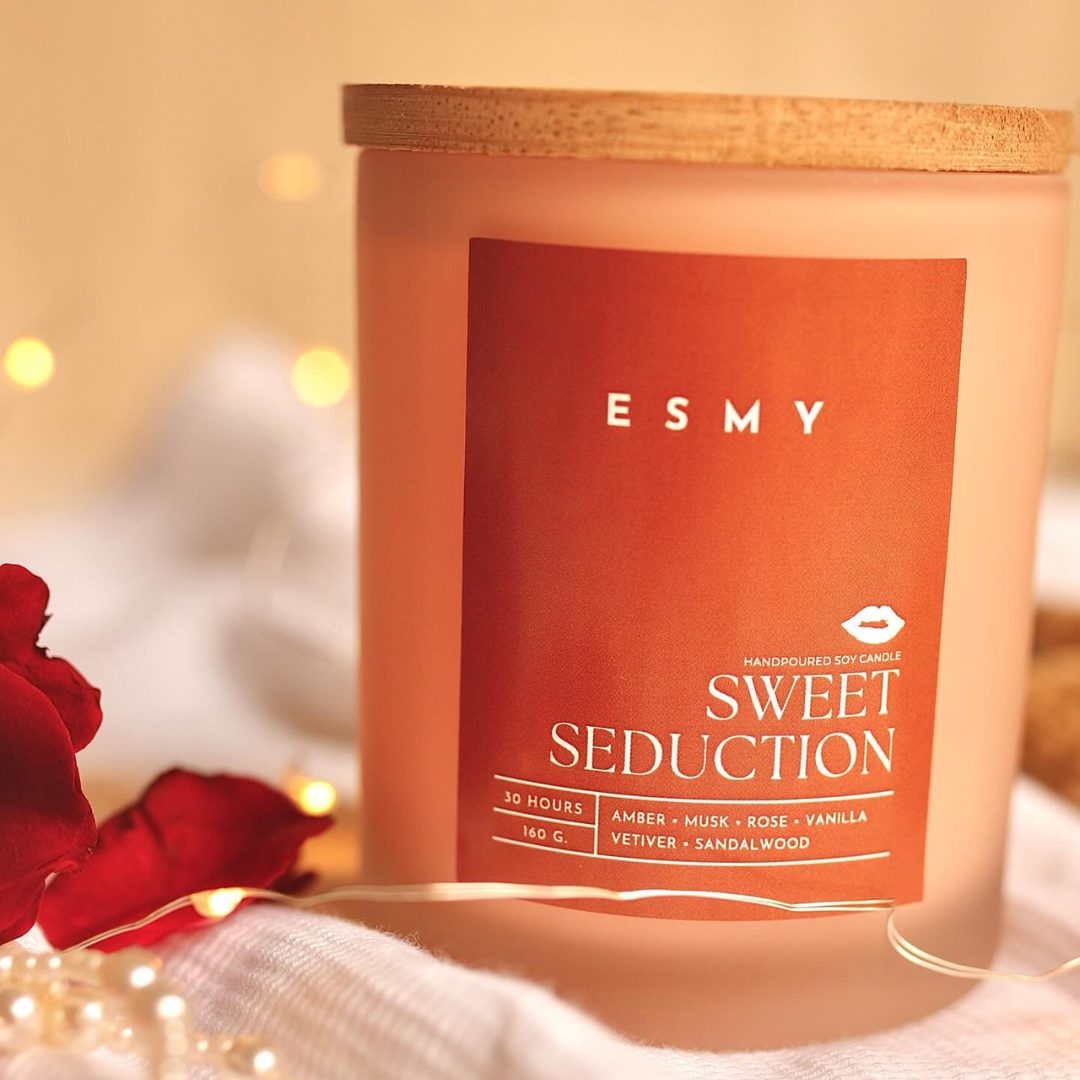 Our Sweet Seduction candle is perfect for setting the mood on a quiet night in, igniting a spark of romance, or adding an element of mystique to your special occasions